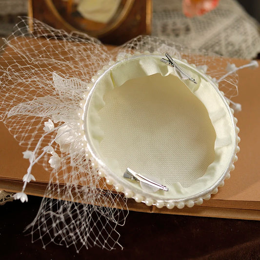Mini White Satin Fascinator Hair Clip – Women’s Flower & Pearl Headpiece for Bridesmaids, Church, Dance Shows & Tea Parties