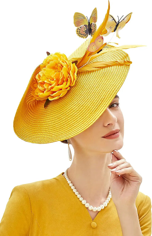 Elegant Butterfly & Floral Fascinator Hat – Women’s Tea Party, Kentucky Derby, Church Pillbox Headpiece with Headband