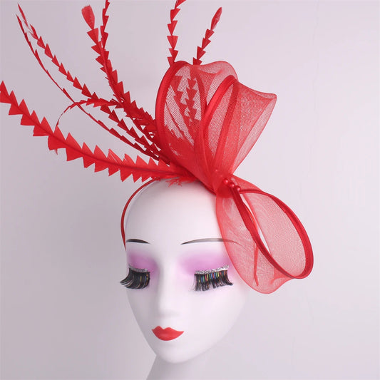 Elegant Red Wedding Fascinator Hat – Imitation Sinamay Feather Headpiece, Vintage Bridal Hair Accessory for Women