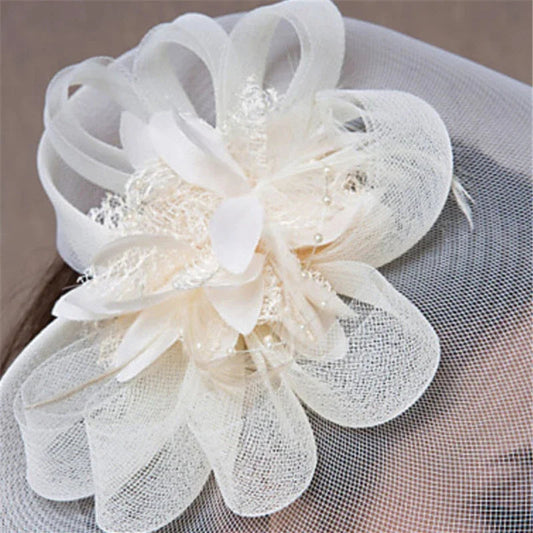 Feather & Mesh Flower Fascinator – Elegant Headpiece with Faux Pearls for Weddings & Special Events