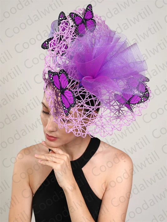 Fashion Butterfly Fascinator Hat – Elegant Wedding & Race Day Headpiece, Big Pillbox Cap for Ladies, Derby & Parties