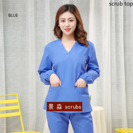 Medical Uniform Long Sleeve V-neck with Chest Pocket Scrub Top