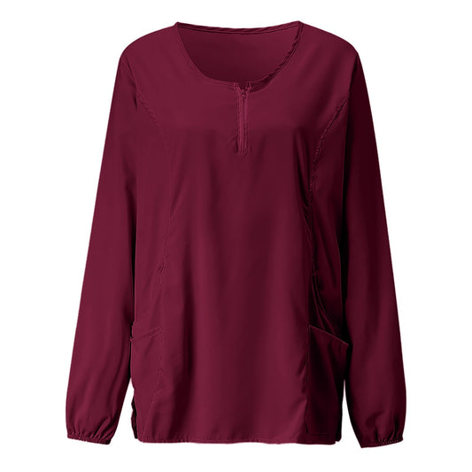 Zipper V Neck Long Sleeve Scrub Uniform Top
