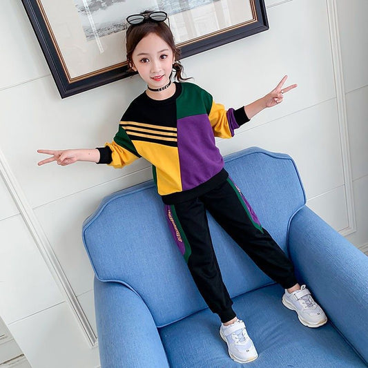 Color Matching Sweater Top + Pants for Girls Two Piece Set