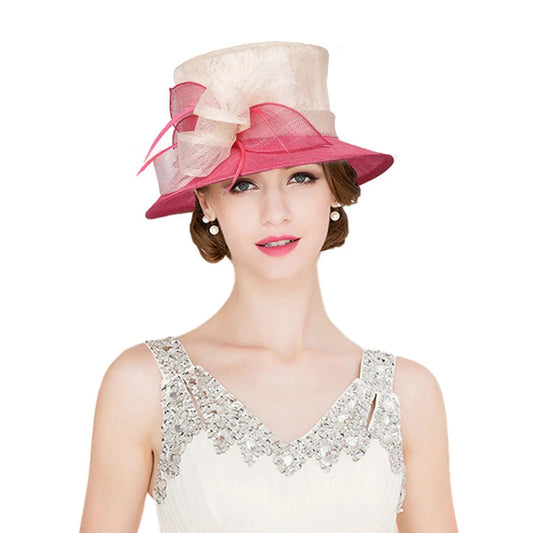 Pink Sinamay Flat Top Kentucky Derby Hat – Elegant Wedding Bridal Millinery, UV Protection Lightweight Linen Sun Cap for Women