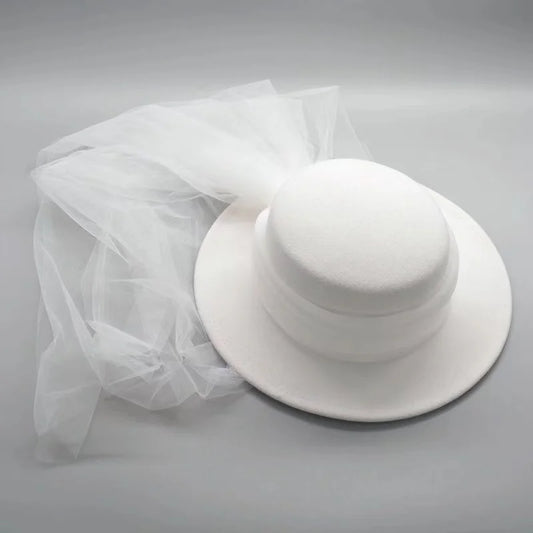 High-End Elegant Retro French Wool Top Hat – White Headdress for Weddings, Travel Photography & Special Occasions