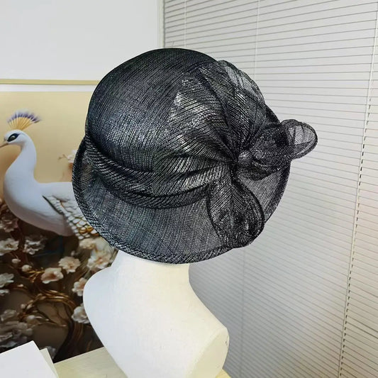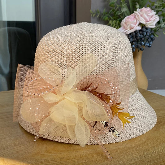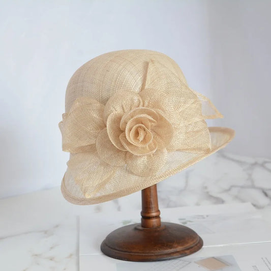 New Fashion Women’s Fedora Bowler Straw Hat – Spring Summer Breathable Flax Gauze with Elegant Flowers