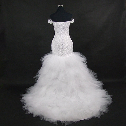 Luxurious Mermaid Strapless Ruffle Long Train Wedding Dress Sexy Formal Bridal Gowns