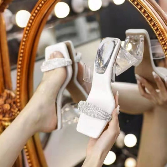 Outdoor Rhinestone Pointed Thick Heel High Heel Sandals