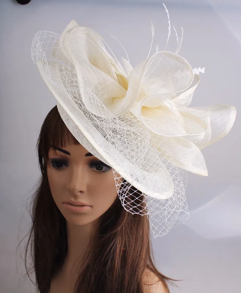 Fancy color sinamay fascinator headwear feather bridal veils party show hair accessories wedding millinery cocktail hat