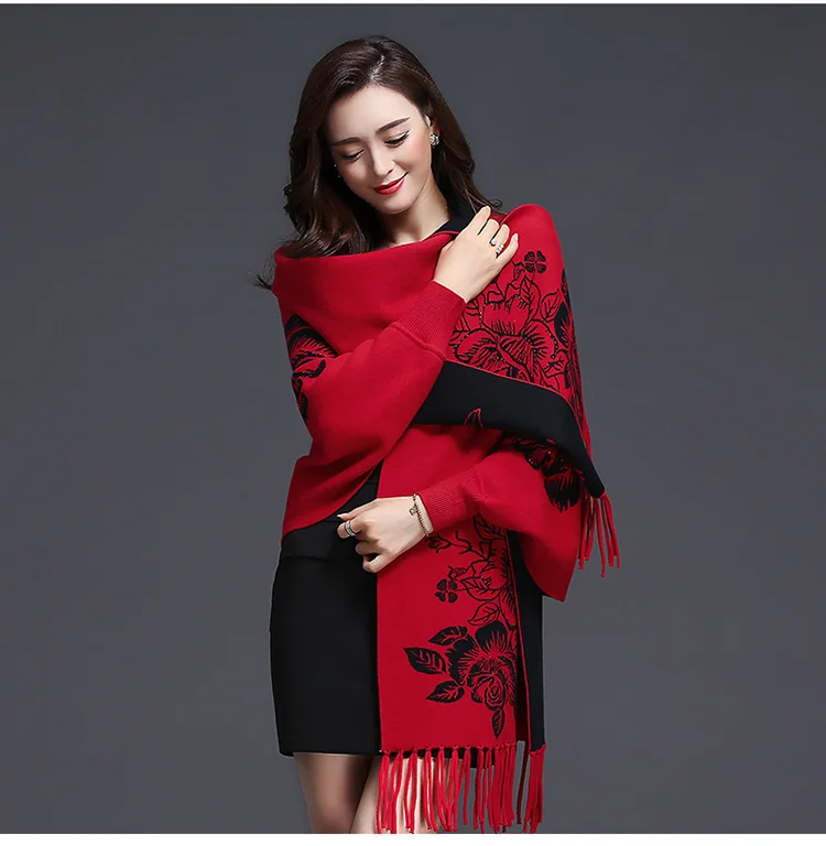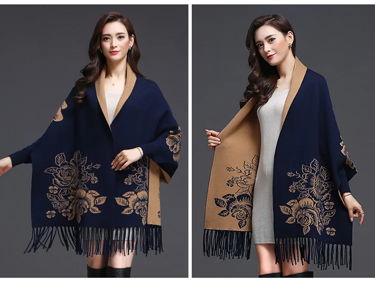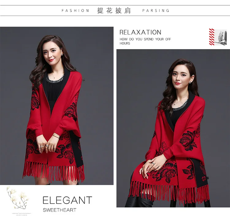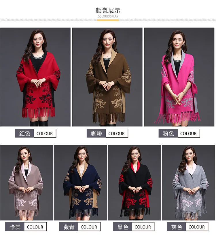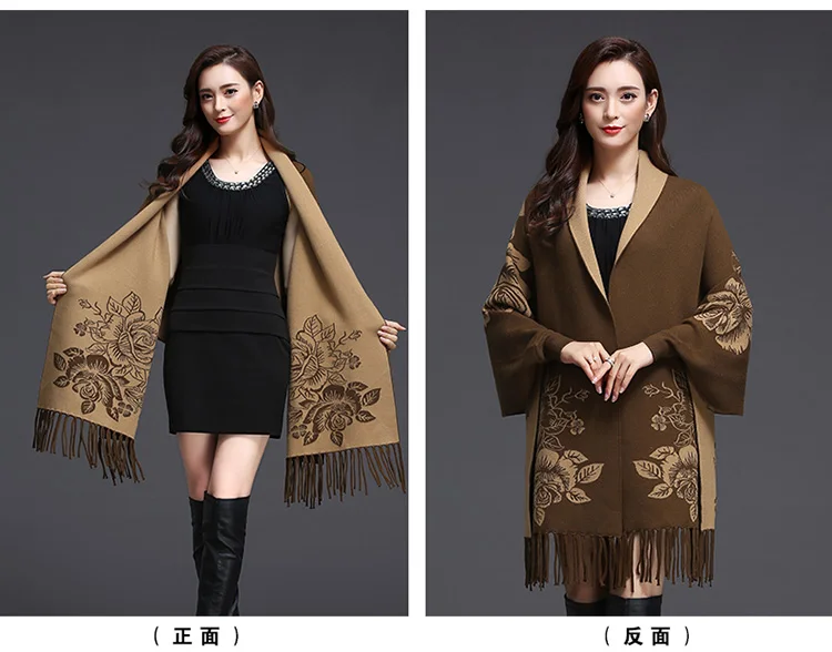 2019 Cardigan Winter Women's Elegant Tassel Wrap Swing Cardigan Knitted Oversized Sweater Scarf Women's Sweater Blouse Plus Size