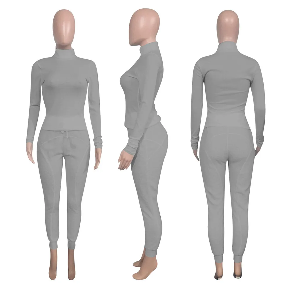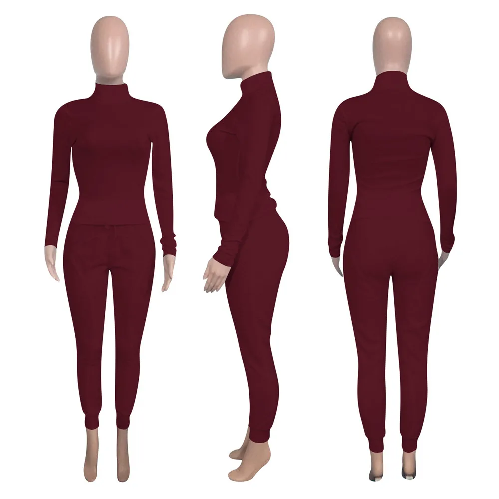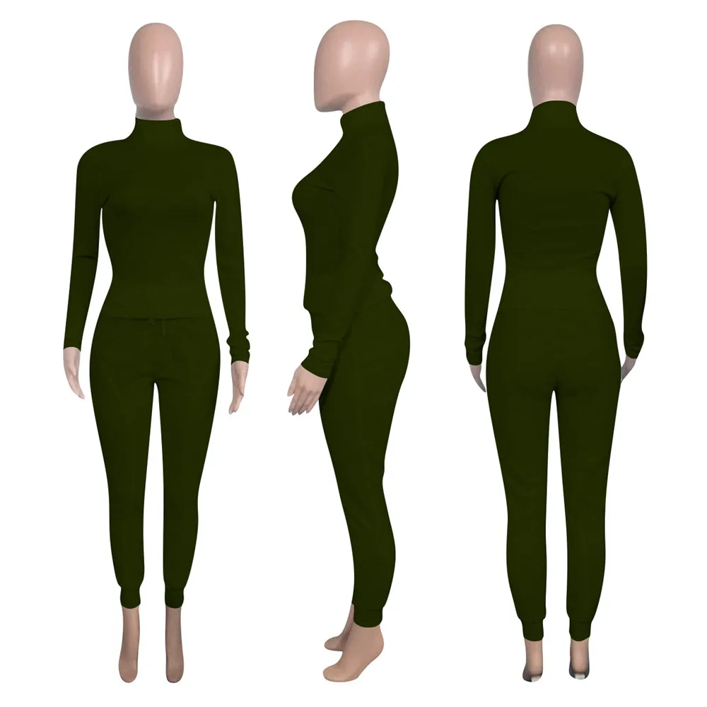 Turtleneck Top And Pants Two Piece Set